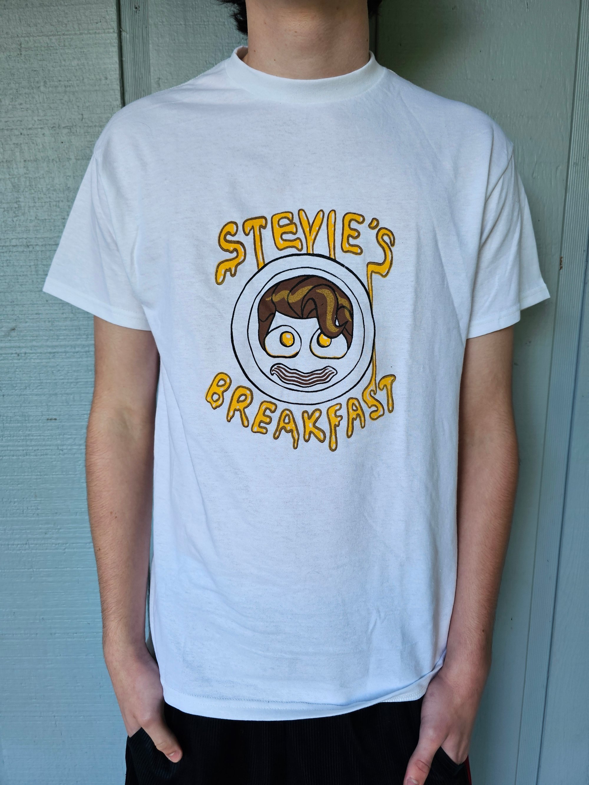 FREE STICKER WITH EVERY SHIRT PURCHASE!! T-Shirt with our logo in color on a white shirt. (If you need a size larger or smaller than is offered, simply message us and we can accommodate).